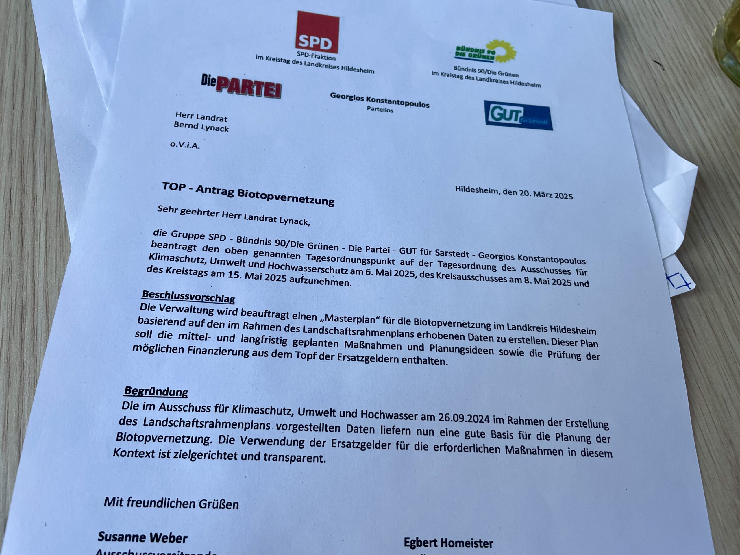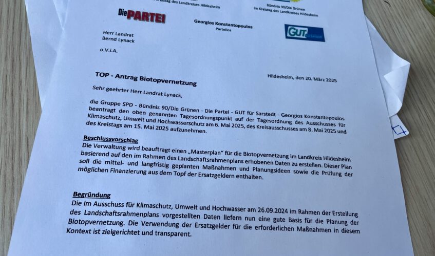 Die Vielfalt unserer Tier- und Pflanzenarten kann nur erhalten und wiederhergestellt werden, wenn wir ihre Lebensräume sichern, erhalten und nötigenfalls wiederherstellen. Damit sich die Arten in für sie potenziell geeignete Lebensräume ausbreiten und sich die Teilpopulationen zwischen den für sie geeigneten Lebensräumen austauschen können, brauchen wir einen Biotopverbund, der neben den Schutzgebieten als Kernelement auch aus Verbindungsflächen und Trittsteinen bestehen muss. Daher haben wir die Verwaltung nun beauftragt einen Masterplan für den Landkreis Hildesheim zu erstellen und außerdem zu prüfen, inwiefern hier aus Windkraftanlagen gezahlte Ersatzgelder genutzt werden können.